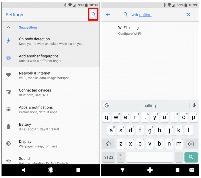 Tap on the result, and it should send you to a menu that has the WiFi calling feature: